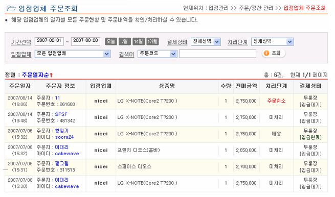 ÀÔÁ¡¾÷ü ÁÖ¹®Á¶È¸